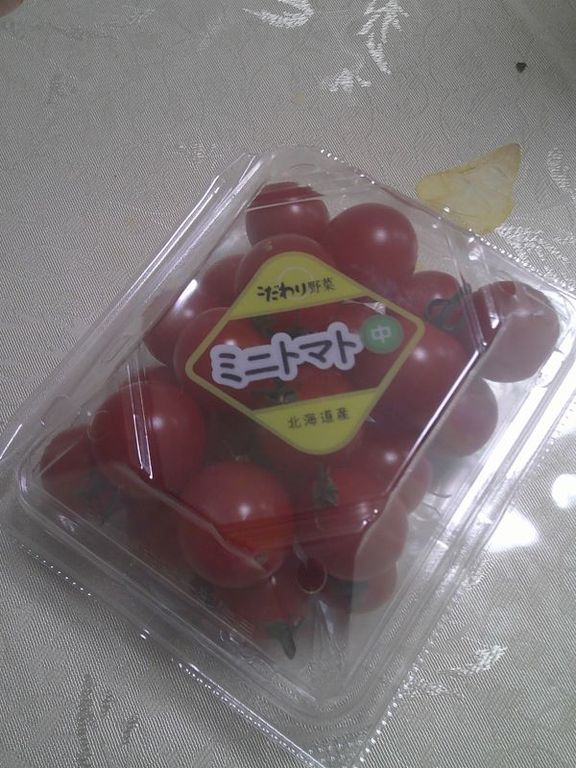 トマトの食べ比べ、今回は北海道産の「こだわり野菜ミニトマト中」にした。 球形のミニトマト。「中」は、ミニトマトのなかでの大きさだろうか。甘みより酸味の方を感じる。歯ごたえがある。(梶川伸)2025.10.25
