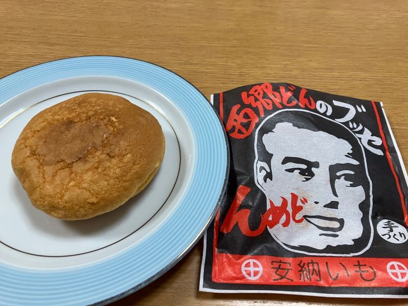 九州土産に、「西郷どんのブッセ」をもらった。鹿児島市、卓味堂の商品。 包装の袋に、西郷隆盛の顔の大きなイラストがドーンと描いてある。「んめど」の文字も。安納イモのあんと生クリームを、カステラ生地ではさんでいる。(梶川伸)2025.11.17