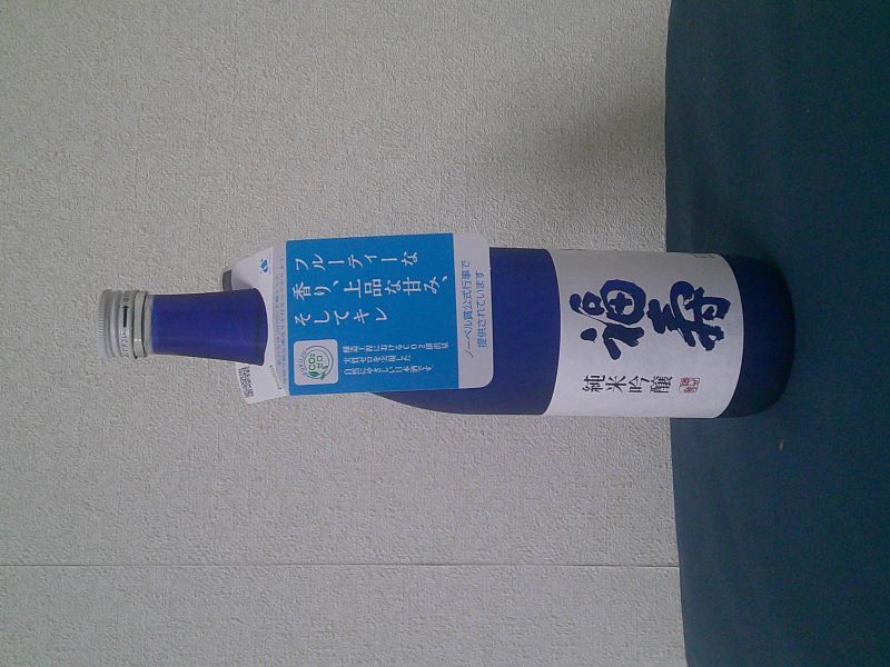 日本酒の飲み比べ、今回は福寿・純米吟醸を味わった。神戸市東灘区、神戸酒心館の商品。 紺色の瓶に入っている。タグがついていて、「ノーベル賞公式行事で提供されています」と書いてある・精米歩合65%。少し辛みを伴うフルーティーさを感じる。(梶川伸)2025.11.24