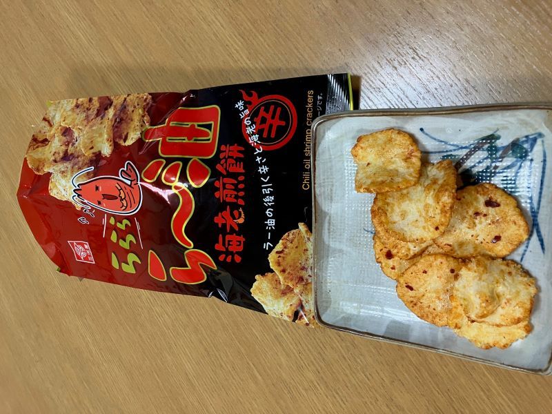 私が辛いもの好きだと知っている友人から、ららららー油海老煎餅をもらった。大阪市阿倍野区、三河屋製菓の商品。 いわゆるエビせん。丸くて、やや厚め。ラー油の辛さはあるが、それほどでもない。エビの味を消さないためだろう。(梶川伸)2025.12.02
