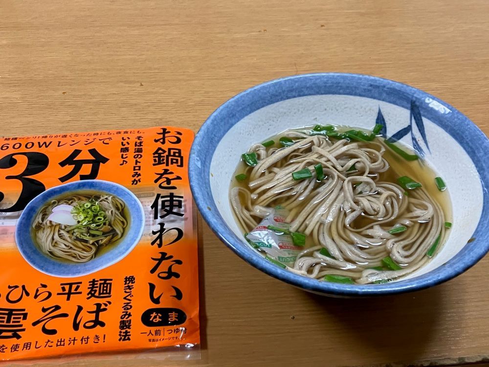 簡単麵の食べ比べ、、回はひらひら平麺出雲そばを選んだ。島根県雲南市木、本田商店の商品だった。 生麵1人分が、つゆと一緒に袋に入っているタイプ。丼に麵を入れ、水300ccを注いでレンジでch-ンをし、小袋の液体つゆを加える。麵はソバの味がし、ややパサパサ感のあるネットリ。つゆは原材料欄を見ると、トビウオとカツオ節を使っていて、うまみのあるしょうゆ7ア味になっている。(梶川伸)2025.12.17
