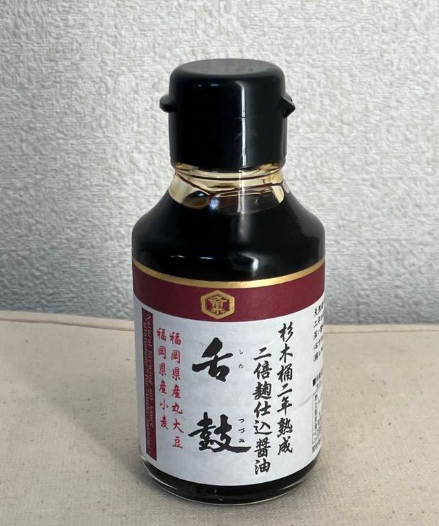 しょうゆ比べ、今回は舌鼓を試してみた。福岡県久留米市、クルメキッコーの商品。 原料は福岡県産の大豆と小麦、それに塩。さいしこみしょうゆ(本醸造)と表示してあり、説明によると、創業から蔵に住みついている蔵つき酵母で、2年間かけて発酵、熟成している、ラベルには「杉木樽二年熟成」「二倍麹仕込醤油」の文字もある。濃い色をしているが透明感も感じる。シンプルな辛さからさながら、まろやなこくもある。(梶川伸)2025.12.28