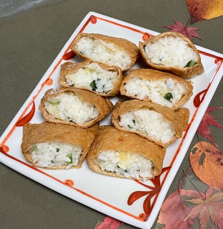 スーパーでいなりあげと、刻んだミブナの漬け物を買う(長いままのものなら刻む)。ユズの皮を細かく切る。コンブを入れてご飯を炊く。ご飯を大きな平たい皿に入れ、うちわがクリアファイルのようなものであおぎながら、すし酢をふって混ぜ酢飯を作る。ミブナは水分を切ってボウルに入れ、ワサビを加えて混ぜる。それとユズを酢飯に加えて混ぜる。酢飯をいなりあげに詰める。