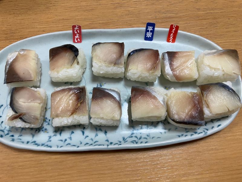 全部の店の味を試そうと思い、始まる時刻に行ったが、すでに長い列ができていた。大変な人気で売り切れの店が出て、手に入れたのは6つだけ。平宗、田中、いざさ、ひょうたろう、よいよい、ヤマト。サバの厚みや酢じめの程度などに違いはあるのだろうが、なかなかか違いを感じるのは難しかった。(梶川伸)2026.01.20