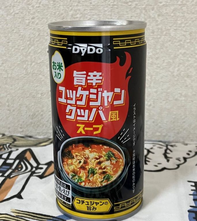 自動販売機の変わった飲み物、今回は駅の自販機で、旨辛ユッケジャンクッパ風スープを買ってみた。大阪市北区、ダイドードリンコの商品だった。 口にすると、すぐに辛さがくる。原材料欄には焙煎玄米が最初に書いてあり、コチュジャン、がらスープ、トウチジャン、イワシエキス、ビーフエキスなどたくさんの名前が並びに、複雑な味わい。よく振らないと、米粒が最後に残る。(梶川伸)2026.02.12