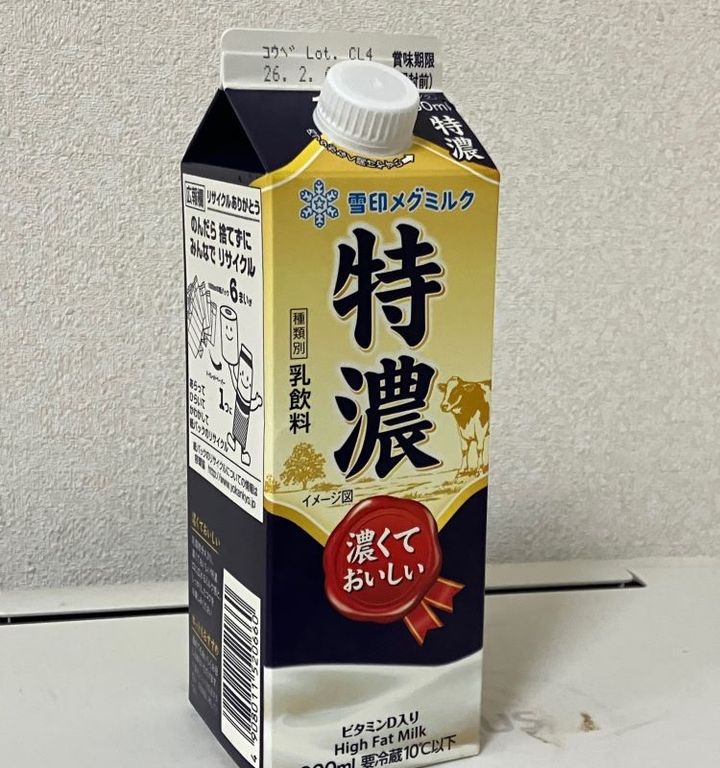 スーパーで売っている牛乳の飲み比べ、今回は特濃を試してみた。札幌市、雪印メグミルクの商品。 種類別では、乳飲料となっている。「ビタミンⅮ入り」とも表示してある。「特濃」ではあるが、味は案外あっさりしている。(梶川伸)2026.02.14