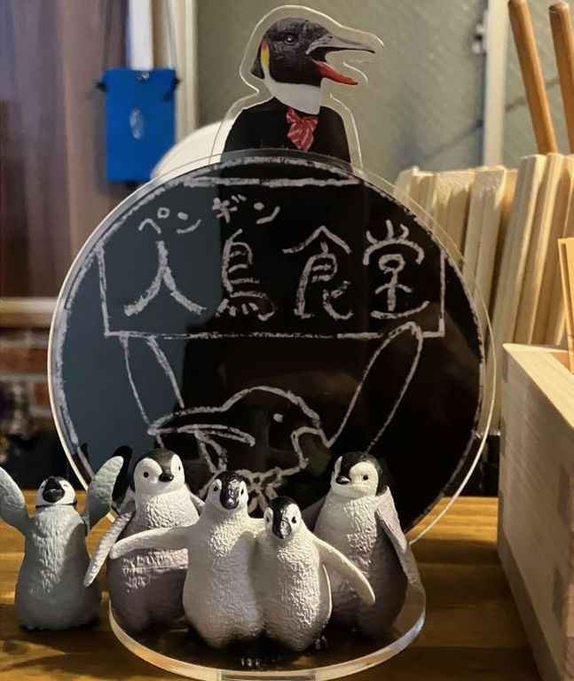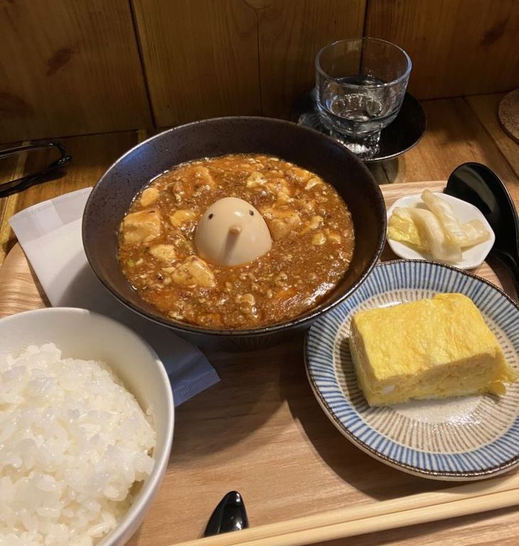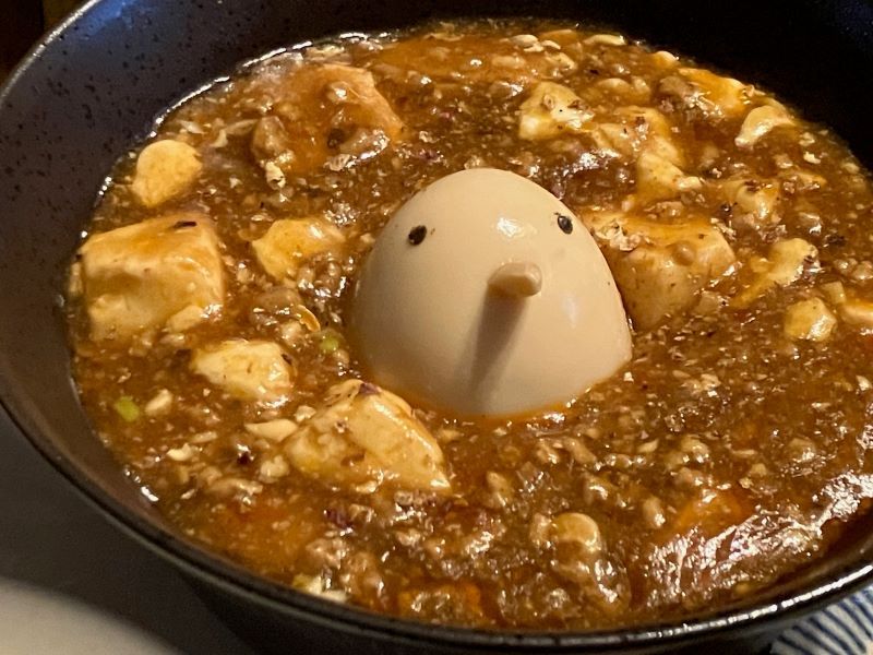 店内はペンギングッズがズラリ。モニターテレビででペンギンの映像を流し続けている。麻婆豆腐はトッピングができ、その中にペンギン玉子があった。200円。注文すると、ゆで玉子に目と鼻をあしらい、ペンギンに見せて乗せてあり、思わず笑ってしまった。(梶川伸)2026.02.24