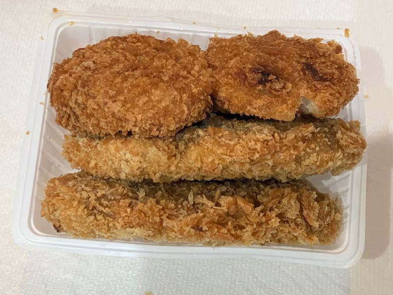 神戸市で所要があった時、テレビ番組で紹介されていた長田区の笹山精肉店に行き、コロッケ(100円+税)とミンチカツ(150円+税)を買ってみた。