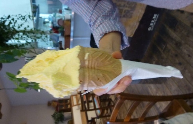 アイスクリームはいろいろな種類があり、値段もそう高いものはないので、手軽に食べられる。だから遊びに行ってちょっと変わったものを見つけると、食べてみたくなる。今回は、仲間と車で淡路島に行った折、島の南端、福良港の近くのカフェ「B.エルム」のアイスを紹介する。