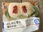 コンビニおにぎりの食べ比べ、今回は「だしおにぎり梅おかか」を選んだ。大津市、サンデリカ滋賀事業所の商品。 だしをよくきかせたおにぎり。具は梅干しとカツオ節...