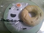 こんにゃくベーグル、という名前にひかれて買ってみた。愛媛県四国中央市、一柳の商品。 リング状のベーグルで、オレンジピールが練り込んで焼いてある。原材料欄を...
