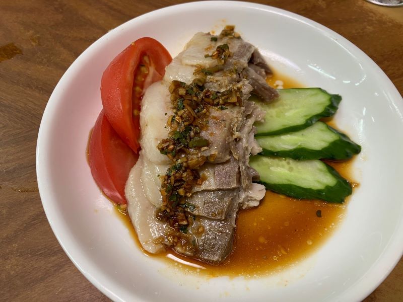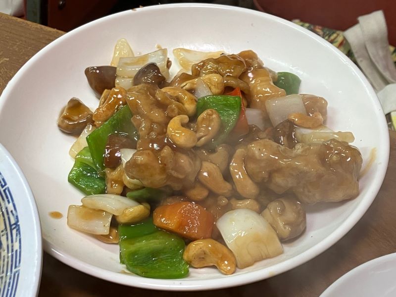 天津飯を頼んでいる客が多いので、私たちもそれに乗った。ほかに熟成豚肉ギョウザ、シュウマイ、蒸し豚、鶏肉とカーナッツ、エビのチリソース炒めをを頼み、3人で分けて食べた。天津飯はしょうゆベースのあんがたっぷりかけてあった。(梶川伸)25.10.29