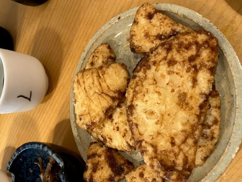 奈良市・近鉄奈良駅に近い「おたぬき堂」に行った。奈良の酒を飲ませる日本酒バー。つまみえ気に入ったのは、木桶醬油しみこみせんべいだった。販売は千葉県流山市のベストフード、製造は埼玉県鴻巣市の大一米菓。 いわゆる、濡れせんべい。包装の袋を見せてもらうと。イゲタ醬油木桶仕込み醬油・木まじめ使用と書いてあった。(梶川伸)2025.12.19