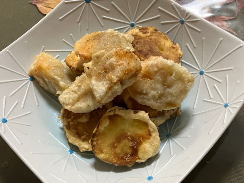 店のものは、柿の色がきれいだった。衣が薄いからだろう。ズボラでは普通に衣をつけてしまい、柿かサツマイモが見分けがつかなくなってしまった。店はさすがである。(梶川伸)2026.01.21