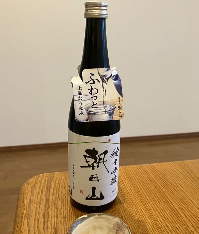 日本酒の飲み比べ、今回は友人宅で朝日山・純米吟醸を味わった。新潟県長岡市、朝日酒造の商品。 瓶にタグがついていて、「ふわっと上品なうまみ」と書いてあった。新潟の酒の淡麗さを保ちながら、コクも結構感じる。この酒蔵は1830年創業だという。(梶川伸)2026.01.10