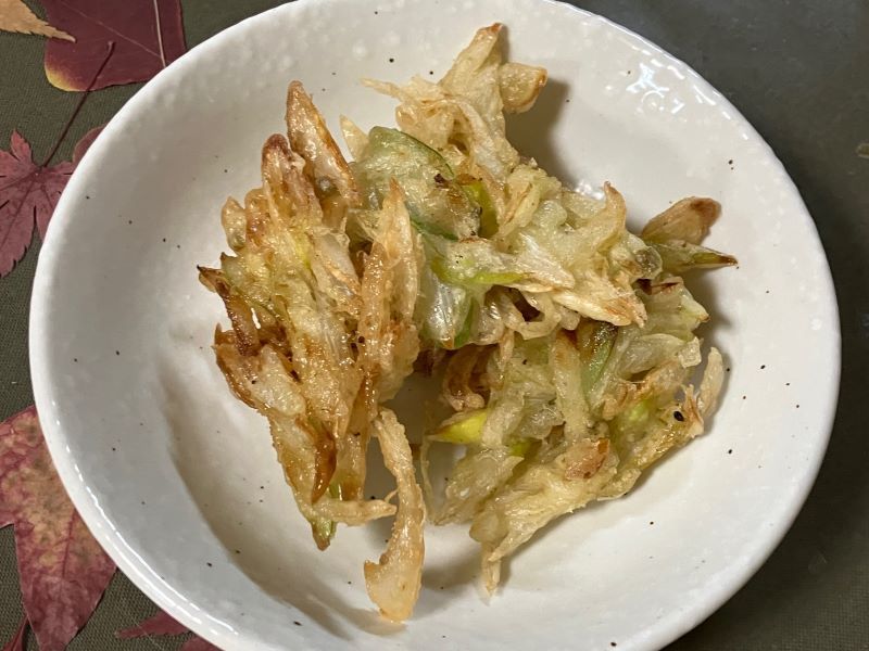 編集のズボラ料理(854) 白ネギのワサビかき揚げ