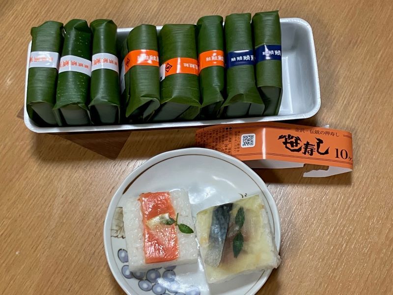 北陸に行ったご近所さんから、土産に笹寿しをもらった。金沢市、芝寿しの商品だった。