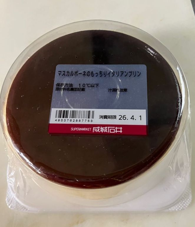 コンビニのスイーツの食べ比べ、今回は成城石井の「マスカルポーネのもっちりイタリアンプリン」を買ってみた。製造は神奈川県大和市、成城石井第3セントラルキッチン。 大きなプリン。密度が濃くて固めで、重量感がある。チーズの味が強い。上に焦げ茶色のカラメルがゼリー状で乗せてある。(梶川伸)2026.04.24