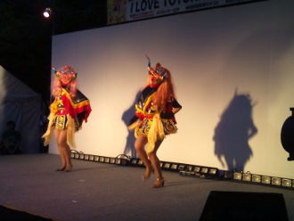 I love Toyonaka ゾーンでは、ボリビアの民族ダンスのステージが行われています。 (礒野健一)